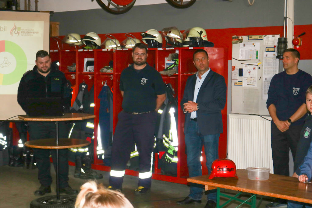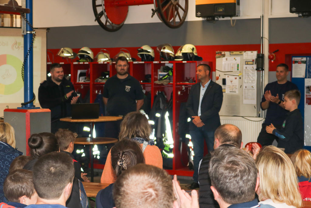 Grußworte sprachen auch der Samtgemeindebürgermeister Arne Behre, der die Wichtigkeit moderner und engagierter Nachwuchsarbeit für die Zukunft der Feuerwehren betonte, sowie Herr Eifert vom Vorstand der VR Bank Stiftung, der die Entstehungsgeschichte des Projekts und die starke Beteiligung der Region besonders würdigte.