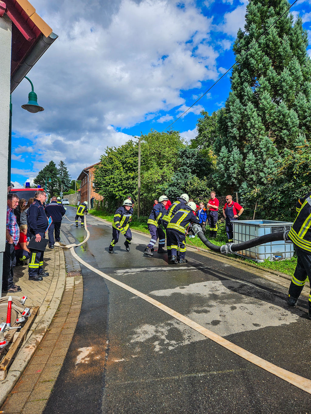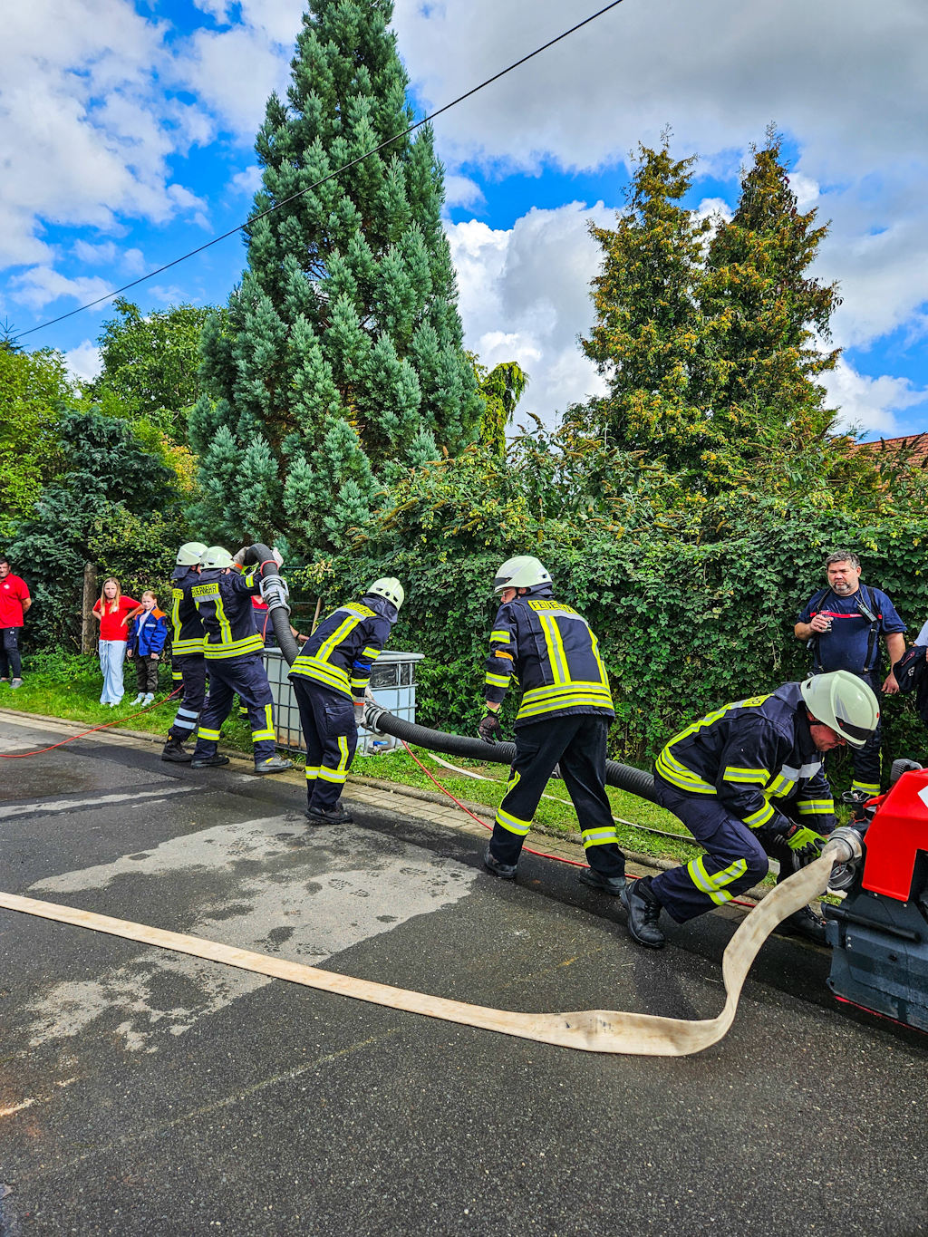 Mit viel Konzentration, Teamgeist und Routine absolvierten unsere Kameradinnen und Kameraden die Übung souverän. Die einzelnen Handgriffe saßen perfekt, sodass die Mannschaft eine fehlerfreie Leistung abliefern konnte. Unterstützt von den anfeuernden Zuschauern gelang es, zusätzlich eine hervorragende Zeit auf die Bahn zu legen.